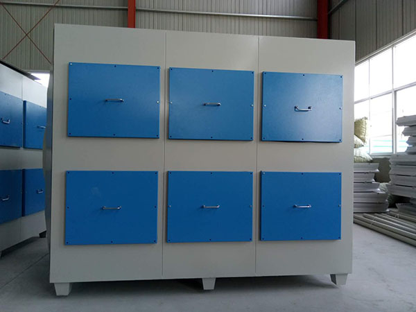 工業VOCs有機廢氣進入UV光氧催化設備內部被破壞、分解、催化氧化成無毒無害無味氣體。采用高能C波段紫外線光線照射工業VOCs有機廢氣,使工業VOCs有機廢氣發生裂解和分化,改變物質分子結構,將高分子污染物質裂解、氧化成為低分子無害物質,如水和二氧化碳等。紫外線照射下產生的臭氧是一種強氧化劑能進一步將未完全反應的廢氣進一步進行氧化,同時紫外線光具有殺菌和消毒的作用。 設備內部都安設了二氧化鈦催化板,催化板具有加強廢氣處理的效果和效率。