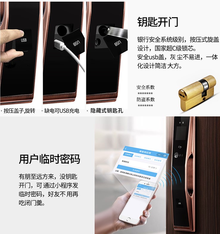 指紋開鎖、密碼開鎖、刷卡開鎖、鑰匙開鎖、手機(jī)小程序遠(yuǎn)程開鎖